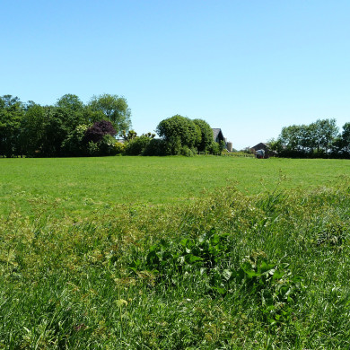 Pastorie. Woonhuis onder dwars zadeldak tussen topgevels met schoorstenen waarop dekplaten. De zeven traveeën brede voorgevel is boven de ingang in het midden opgehaald tot een Vlaamse topgevel met ingezwenkte top. Omlijste ingang; zesruitsvensters. Acht stoeppalen door kettingen verbonden.