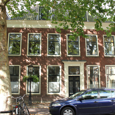 Een 17e eeuws pand bestaande uit een voor- en een achterhuis, beide met twee bouwlagen en een kap loodrecht op de straat. Het voorhuis is onderkelderd.