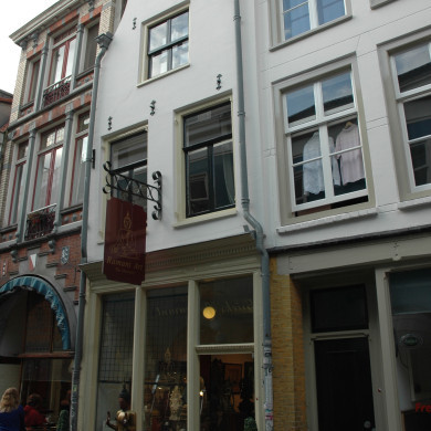 Een eind 16e eeuws, maar deels ouder, huis bestaande uit twee bouwlagen, een kap loodrecht op de straat en een kelder.