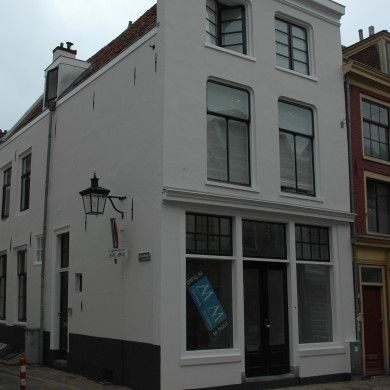 Een 17e eeuws hoekpand met de nok loodrecht op de springweg.