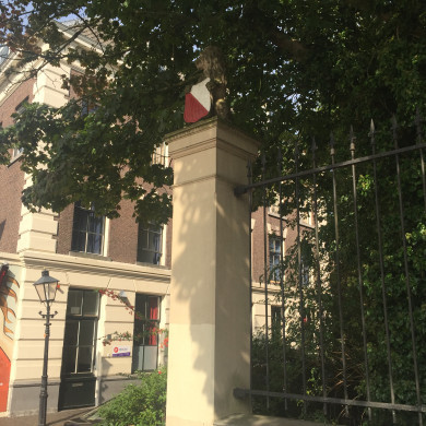Het kazernegebied werd afgesloten door een monumentaal hek dat thuishoort op de Wittevrouwenkade, in het verlengde van de scheiding tussen Wittevrouwenkade 1 en het commiezenhuis Wittevrouwenstraat 44. De twee hekpijlers dragen elk een zittende leeuw die met de voorpoten het stadswapen vasthoudt (1860, door J. Rijnbout, model in gebakken aarde in Centraal museum).