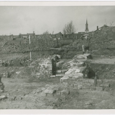 Terrein waarin overblijfselen van het kasteel van de Heren van Axel. Datering: Middeleeuwen.