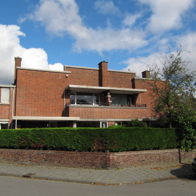 Twee geschakelde herenhuizen die onder een hoek van 45 graden ten opzichte van de rechthoekige kruising liggen, bestaande uit twee bouwlagen onder platte daken. Kenmerkend voor de hier uitgevoerde rode baksteenarchitectuur is onder meer de kubistische opzet van in elkaar grijpende bouwdelen, verspringende gevelvlakken, de ritmische herhaling van de schoorstenen, de toepassing van overdekte balkons, erkers en terassen, pergola's en lage tuinmuren, de overheersende horizontaliteit in de vorm van betonnen lateien, dorpels, afdekplaten en luifels en het aansmeren van horizontale baksteen met zwarte teer. De tuinmuren en de pergola's vormen een wezenlijk onderdeel van de architectuur waarmee de geleidelijke overgang van binnen naar buiten wordt geaccentueerd. De vensters van no.14 zijn door kunststoframen vervangen; die van no.24 door aluminium.