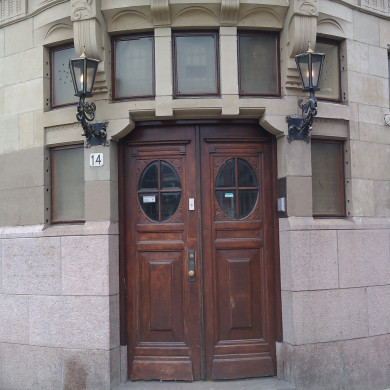 Van het oorspronkelijke interieur resteert een in marmer uitgevoerde hal, een balie, de smeedijzeren balustrade van het trappehuis die met rankwerk versierd is. In deze ruimte is een Art Nouveau lamp aan het plafond bevestigd.
