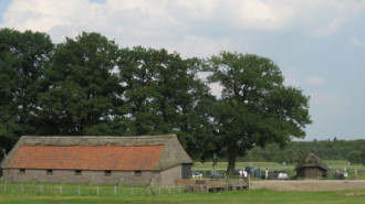 In een natuurreservaat gelegen eenvoudige, witgepleisterde boerenwoning onder rieten wolfdak, daterend uit de 18e eeuw.