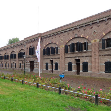 Op het terreplein achter het bastion (bekend als bastion VII) bevindt zich een grondgedekte kazerne (gebouw D).