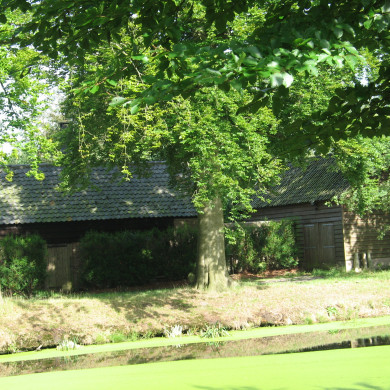 De overige gevels van de schuur, die uit de 19e eeuw of van eerder dateert, zijn van op een bakstenen onderbouw geplaatste gepotdekselde houten delen van recente datum voorzien.