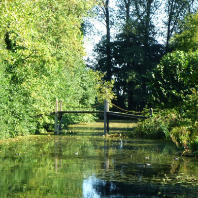 BRUG. De toegang tot het jagershuis wordt gevormd door een 18de-eeuwse bakstenen boogbrug voorzien van twee bogen met muurankers in het metselwerk en hardstenen hoekblokken.