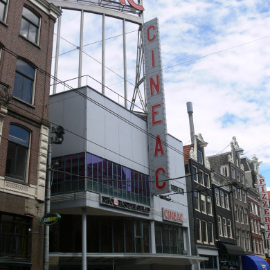 Volgens de principes van het Nieuwe Bouwen in 1934 in opdracht van de NV Cineac (van het Algemeen Handelsblad) naar ontwerp van J. Duiker als verbouwing (van het grotendeels daartoe afgebroken Cafe Populaire/de la Paix uit 1919) uitgevoerde bioscoop-gebouw - in oorsprong bestemd tot actualiteitentheater met doorlopende filmvoorstellingen - genaamd Cineac, en destijds ingericht met ruim 600 zitplaatsen.