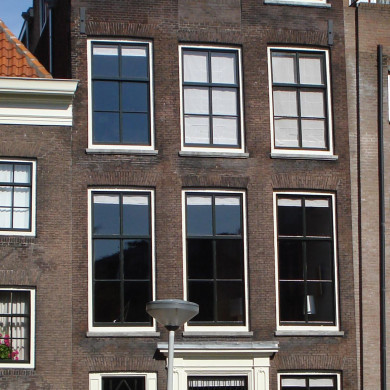 Koopmanshuis, midden 18e eeuw, met eenvoudige lijstgevel en belangrijk Lodewijk XV-interieur.