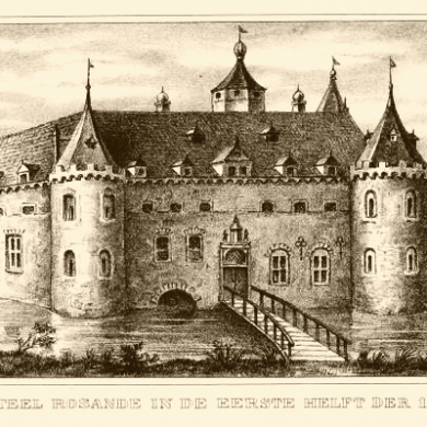 Terrein waarin overblijfselen van het kasteel Rosande. Datering: middeleeuws.