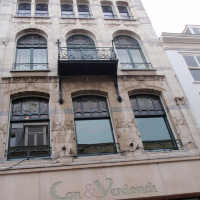 Winkel-woonhuis in Art Nouveau, gebouwd in 1897 naar ontwerp van de architect Johan Mutters Jr. in oorsprong voor magazijn Hagemeijer. Het pand is opgenomen in de straatwand met aaneengesloten bebouwing. Omschrijving.