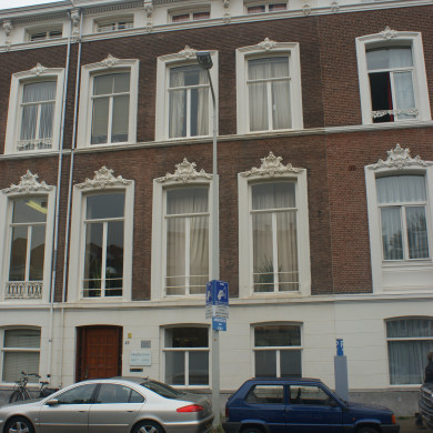 Herenhuis in eclectische trant, gebouwd in het derde kwart van de 19e eeuw. Het pand vormt onderdeel van de reeks aaneengesloten nagenoeg identieke huizen Mauritskade 43 t/m 57, waarvan de buitenste panden aan beide zijden als risalieten zijn opgevat. Omschrijving.