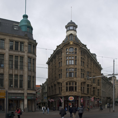 Voormalig modemagazijn uit 1909 op de hoek van de Spuistraat-Hofweg in de historiserende stijl van de "Um Achtzehnhundert Beweging", gebouwd voor de firma B.J. Voss & Zonen naar ontwerp van de architecten J. Jacot en W.Oldewelt. In 1914 aan de zijde van de Hofweg door A. Jacot uitgebreid in dezelfde vormgeving.