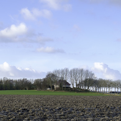Herv.Kerk en toren op verhoogd kerkhof. De kerk bestaat uit een aanvankelijk aan de westzijde vrijstaande en thans aan de oostzijde ingekort eenbeukig bakstenen schip, waarin moeten van kleine hoog geplaatste rondboogvensters. Tegen de westmuur is in de 18e eeuw een forse toren opgetrokken.
