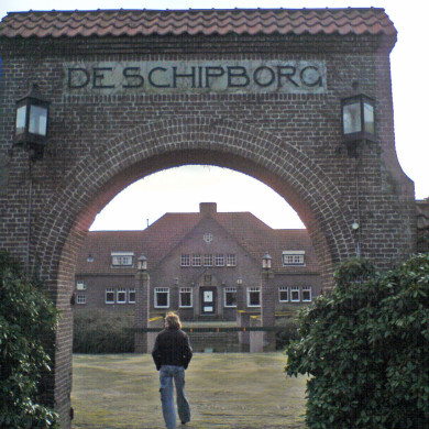 MODELBOERDERIJ "De Schipborg". In opdracht van A.G. Kroller in 1914 naar ontwerp van H.P. Berlage (1856-1934) in rationele trant gebouwde boerderij. Op zeer ruim en afgelegen terrein gesitueerd, uit baksteen opgetrokken, complex op rechthoekige plattegrond en bestaande uit in U-vorm rond een binnenplein met paardewed gegroepeerde dienstgebouwen en stallen onder zadeldaken, aan de vierde zijde met elkaar verbonden door een muur met toegangspoort met hek, aan beide zijden geflankeerd door een klein dienstgebouw. Buiten de ommuring twee geheel van ijzer geconstrueerde hooibergen (althans volgens het oorspronkelijk ontwerp).