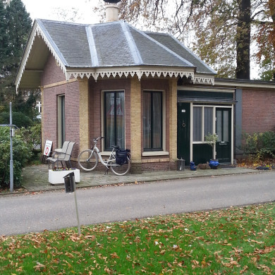Uit ca. 1900 daterend, in schoon metselwerk opgetrokken, bij het huis "Bronbeek" behorend portiersgebouwtje op rechthoekige plattegrond met aan de lange zijden over bijna de gehele breedte driezijdige uitbouwen en onder overhuivend, met leien gedekt dak - zadeldak gesneden door schilddak - met rondom gesneden, opengewerkte windveren en bekroond door een achtkantige schoorsteen met spitsvormige afdekking; overhoeks geplaatste pilasters en per gevelvlak een groot venster; tegen de noordgevel een latere aanbouw. Eenvoudig, doch zeer zorgvuldig gedetailleerd gebouwtje, dat een onderdeel vormt van het gehele "Bronbeek"-complex.