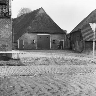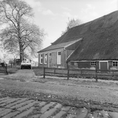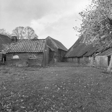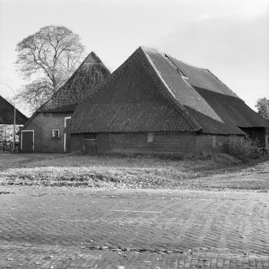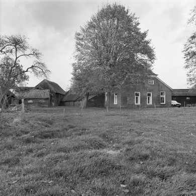 19e eeuws boerderijcomplex bestaande uit boerderij met achterbaander, grote schuur en stookhok met varkenskot. De boerderij onder deels pannen deels rieten wolfdak met uilebord aan achterzijde; windveren, staafankers, eenvoudig geprofileerde gootlijst; onderkelderde uitkubbing; schuifvensters; getoogde baanderdeuren met wybertvensters, rechtgesloten staldeuren en vierkante en rechthoekige stalvensters. De grote schuur deels uit steen deels uit hout opgetrokken en gedekt door een (thans gedeeltelijk met golfplaat belegd) rieten schilddak. Bakstenen stookhok met varkenskot onder pannengedekt zadeldak, deur, halfronde vensters met tracering, windveren, schoorsteen. Het erf grotendeels nog met keitjes bestraat.