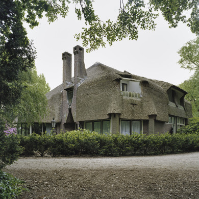Op een langgerekte plattegrond gedeeltelijk in baksteen en met van gepotdekselde delen voorziene verdieping opgetrokken villa, deeluitmakende van een oorspronkelijk "Zofar", "Elifaz" en "Bildad" genaamde trits landhuizen en door middel van een inmiddels dichtgemaakte poort te linkerzijde met de t