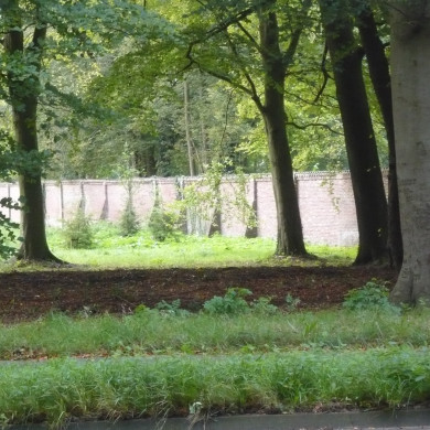 TUINMUUR. Bakstenen van lisenen en steunberen voorziene tuinmuur, behorende tot de aanleg van omstreeks 1730/42 en staande tussen het pinetum en de ringsloot.