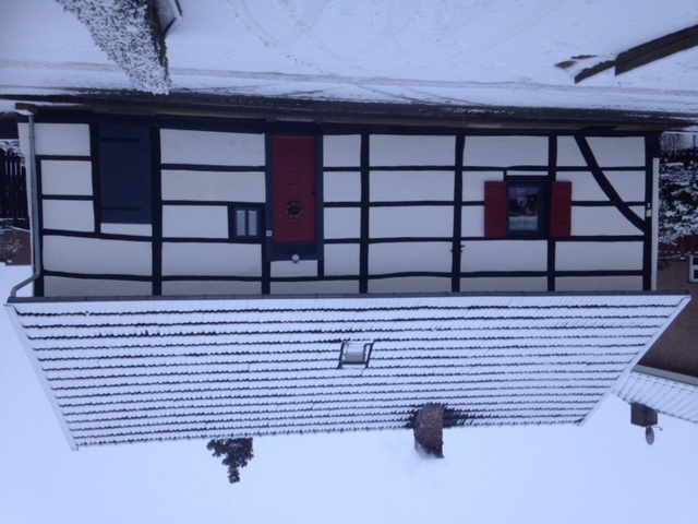 Uit ca. 1750 daterend, aan een zijweggetje van de Banerheiderweg gelegen VAKWERKHUIS op rechthoekige plattegrond, onder verdieping en onder met blauwe muldenpannen gedekt zadeldak.