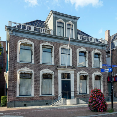 Gemeentehuis. Statig vroeg 19e eeuws huis met stucwerk in de gang en beschilderde wandbespanning in de raadzaal.