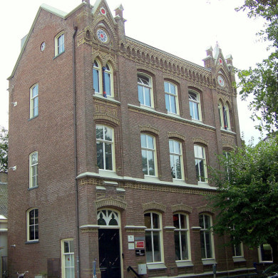 Het in een aan de neo-gotiek verwante stijl gebouwde pand verving het van 1854 daterende telegraafkantoortje dat zich op de zelfde locatie bevond. Het werd in 1874 gebouwd als TELEGRAAFKANTOOR, dat tevens een functie als POSTKANTOOR kreeg. Nadat het nieuwe postkantoor aan de Zuidersingel in gebruik was genomen diende het Post- en Telegraafkantoor in de periode 1905-1926 als onderkomen van de Rijks Dagnormaalschool en werd het ten behoeve daarvan in 1907 inwendig verbouwd. Na 1926 bood het onder meer nog onderdak aan de openbare leeszaal.