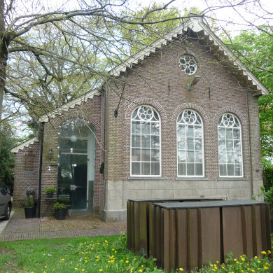 SCHOOLGEBOUW uit 1877, gelegen aan een oude zandweg en omgeven door een beukenhaag en enkele eiken. Het gebouw is nu als woning/atelier in gebruik.