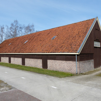 Eenvoudig en functioneel vormgegeven SCHAAPSKOOI evenwijdig aan de weg gelegen en opgetrokken uit baksteen en hout, gedekt door een zadeldak met rode hollandse pan; windveren en kleine gietijzeren dakramen. Zijgevels met op regelmatige afstand houten staldeuren en houten ventilatieluiken. Inrijdeuren in kopse gevels met aan oostelijke zijde bovenlicht; daarboven hooiluik.