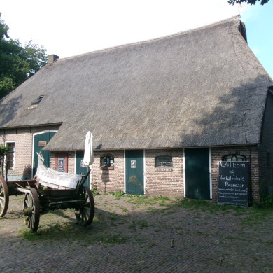 Gerestaureerde 18e eeuwse boerderij onder rieten schilddak, aan de voorzijde aansluitend tegen een puntgevel. Uitgebouwde eindkamer tegen het voorhuis. Woongedeelte en eindkamer hebben vensters met middendorpel en schuiframen met kleine roedenverdeling.