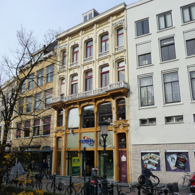 Een in wezen middeleeuws huis met een midden 19e eeuwse voorgevel, bestaande uit drie bouwlagen, kap loodrecht op de straat, een kelder en een werfkelder.