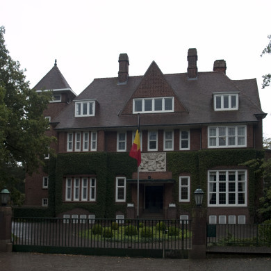 De middenas van de voorgevel wordt bekroond door een in het dak geplaatste topgevel, waarvan het gevelvlak is versierd met gemetseld vlechtwerk. De assen aan weerszijden zijn als risaliet uitgebouwd. Boven de ingang in de middenas bevindt zich een wapensteen, die evenals de luifel uit 1938 dateert. In dat jaar werd ook het oorspronkelijke terras tegen de rechterzijgevel aan de Tobias Asserlaan in een serre gewijzigd. Deze gevel bevat voorts in de zijassen twee driezijdig uitgebouwde erkers, waarboven een balkon met een bakstenen borstwering. De assen worden bekroond door een topgevel met gemetseld vlechtwerk.