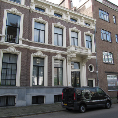 Herenhuis op rechthoekige plattegrond, bestaande uit souterrain, twee bouwlagen en mezzanino onder een plat dak, vier vensterassen breed. De bakstenen voorgevel bezit een met natuursteen bekleed souterrain. De bouwlagen worden van elkaar gescheiden door geprofileerde stucwaterlijsten. In de tweede as van rechts is de ingang, bestaande uit een dubbele paneeldeur, gesitueerd. De ingang wordt bekroond door een balkon met balusters, rustend op zware gebeeldhouwde consoles in neo-Lodewijk XIV-trant. Rechts daarvan bevindt zich een kleine ingang met rond bovenlicht, die uit 1935-1936 dateert toen het pand tot twee woningen werd verbouwd. De T-vensters bezitten rijk geprofileerde omlijstingen met sierstukken, bestaande uit een schelp en/of een maskerkop tussen acanthusbladeren. De souterrainramen zijn voorzien van ijzeren roosters. De gevel wordt afgesloten door een rijk versierde gootlijst, bestaande uit een fries met dubbele rechthoekige mezzanino-vensters, gebeeldhouwde bladconsoles met maskerkoppen en een tandlijst. De achtergevel is gepleisterd met ingekraste groeven. Het twee assen brede rechterdeel is als risaliet uitgebouwd. De gevel bevat voor het merendeel zes-ruits en vier-ruits vensters. De vensters van de eerste bouwlaag zijn vernieuwd. Daaronder bevindt zich het souterrain.