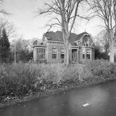 Woonhuis als samengesteld bouwvolume opgebouwd, bestaande uit een bouwlaag en gedekt door een samengesteld deels afgewolfd schilddak, bedekt met een geglazuurde platte fries; zinken pirons; geprofileerde goten op klossen (van snijwerk voorzien); windveren op opengewerkte en van snijwerk voorziene klossen. Gevelopbouw met plint (donkere steen); geglazuurde afzaten; rodebaksteen; natuurstenen speklaag; fries met natuurstenen profielsteen en siermetselwerk. Vensters van diverse afmetingen met oorspronkelijk kozijnhout; natuurstenen vensterbanken, lateien of sluitstenen. Portiek met paneeldeur met snijwerk; zijlichten met glas-in-lood. Rechts van de entree een erker met plat; openslaande deuren. Zuidzijde met serre; bovenlichten met glas-in-lood. Noordgevel met onder meer een kelderraam met diefijzers.
