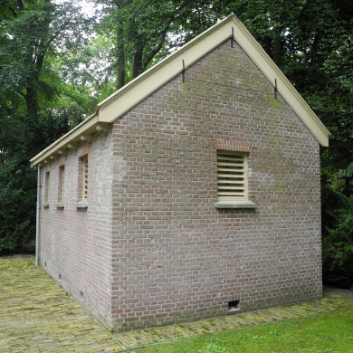 LIJKENHUIS van het voormalige ziekenhuis. Gebouwd in 1893 in opdracht van het Ministerie van Justitie. Ontworpen door W.C. Metzelaar. Thans als opslagruimte in gebruik.