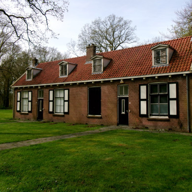 Blok van twee WOONHUIZEN van het type II, gebouwd in 1901 in opdracht van het Ministerie van Justitie en behorend tot een groep van dubbele woonhuizen bestemd voor de schrijvers 2e rang bij het beheer, rijksveldwachters, opzichters veldarbeid, schrijvers/opzichters aan de fabriek. Het ontwerp is van W.C. Metzelaar. De woningen, met in de topgevels de letters C en D, zijn gebouwd op de plaats waar het in 1900 afgebroken Eerste Gesticht heeft gestaan. De woningen zijn op rationele wijze gegroepeerd op een rechthoekig terrein waarbij de tussenliggende ruimte ingevuld is met een parkachtige aanleg met enkele diagonale paden.