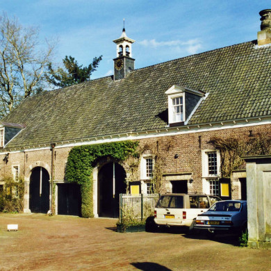 OOSTELIJK BOUWHUIS. Rode bakstenen bouwhuis op rechthoekige grondslag onder met grijze pannen gedekt schilddak, dat het voorplein aan de oostzijde afsluit. Het bouwhuis, dat uit de laatste kwart van de 17de eeuw dateert, vertoont aan het zuideinde van de nok een monumentale zandstenen aan de vleugels van het hoofdgebouw identieke mortiervormige met acanthusbladeren versierde schoorsteen met festoenen op het voetsuk aan de voor- en zijkanten.