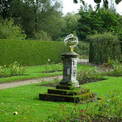 De sokkel staat midden in de parterre met rozenvakken gelegen aan de oostzijde van het huis.