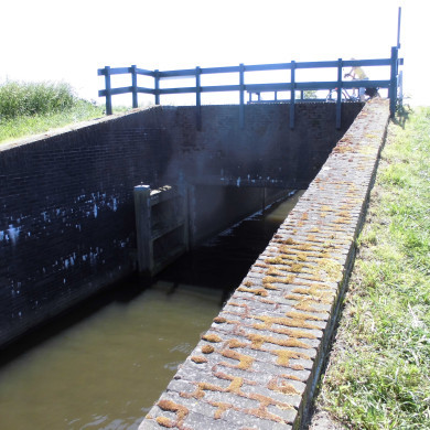"Nijkerkergemaal". Gemaal van de polder Arkemheen. Middelgroot gemaal met twee in de open lucht aangebrachte schepraderen, gebouwd in 1882-1883. Machinehuis met zadeldak, segmentboogvormige vensters, lisenen en klimmende friezen in de puntgevels.