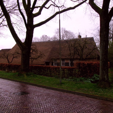 BOERDERIJ met SCHAAPSKOOI in oorsprong 18de eeuws. Boerderij van het hallehuis-type met middenlangsdeel en een daarbij passende schaapskooi als zogenaamde staart. De boerderij werd in de tweede helft van de negentiende eeuw aangepast waarbij de achtergevel een baander kreeg in het vlak van de achtergevel en waarbij het woonhuis deels werd ommetseld en er onder meer licht getoogde 6-ruits schuiframen werden aangebracht. Rond 1968 werd de boerderij tot woonhuis gerestaureerd met bijzondere aandacht voor de 18de eeuwse toestand. De achtergevel (zuidzijde) is van ondergeschikt belang vanwege een afwijkende invulling.