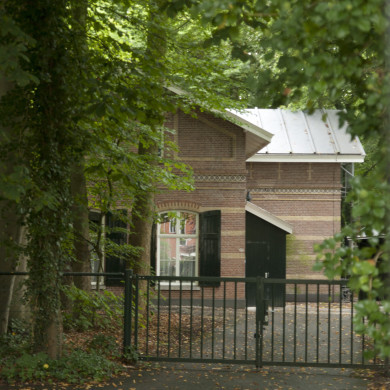Omschrijving KOETSHUIS bij Villa Gelria, vrijstaand gesitueerd aan de noordzijde van de parkachtige tuin, aan het einde van de door groene beuken omzoomde oprijlaan, gebouwd in circa 1895 in een ambachtelijk-traditionele bouwtrant.