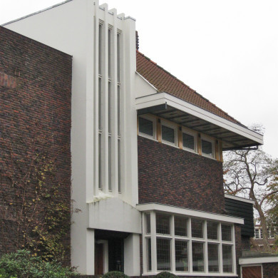 Inleiding DUBBELE VILLA, vrijstaand gesitueerd op de hoek van de Nassaulaan en de Oranjesingel in een reeks van karakteristieke villa's aan de westzijde van het Noorderplantsoen, gebouwd in 1926 naar ontwerp van architect M.B. Bruins in de stijl van de Amsterdamse School.