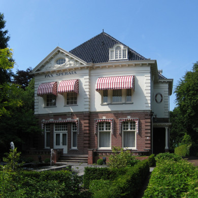 Inleiding VILLA, vrijstaand gesitueerd met rondom grote tuin, gebouwd in 1915 in opdracht van L.L. Ebels naar ontwerp van de Groninger architect A.Th. van Elmpt in een traditionele bouwtrant, de 'Um 1800'-stijl.
