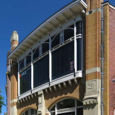 Inleiding WONINGCOMPLEX, markant gesitueerd aan de pleinvormige ruimte waarop de Blekerstraat, de Jozef Israëlstraat en de Melkweg uitkomen, op de wigvormige hoek van de Blekerstraat en de Jozef Israëlstraat, gebouwd in 1903 in een ambachtelijk-traditionele bouwtrant.