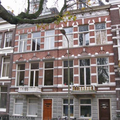 Inleiding HERENHUIS, gesitueerd op de hoek van de gesloten, uit eind negentiende-eeuwse herenhuizen bestaande noordelijke gevelwand van de Praediniussingel en het Emmaplein, gebouwd in 1891 naar ontwerp van architect J.P. Hazeu in een rijk versierde, eclectische bouwstijl.