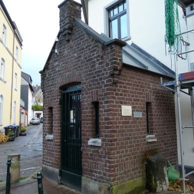 Voormalige DOUANEPOST. Klein wachtgebouwtje bij de rijksgrens aan de Akenerstraat, XIX B, tegen de voorgevel van het laatste pand in de straatwand, in traditioneel-ambachtelijke stijl. De aanpalende oude grenssteen met Duitse rijksadelaar geniet reeds rijksbescherming.
