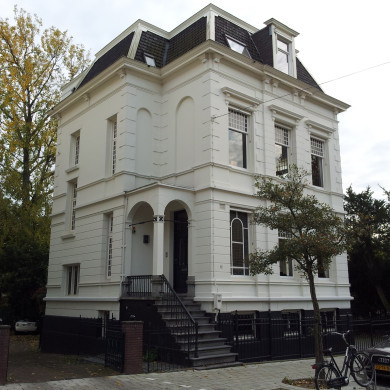 Nabij het Vondelpark gesitueerde, aan vier zijden vrijgelegen VILLA, omstreeks 1885 in eclectische stijl ontworpen met bijbehorend hekwerk.