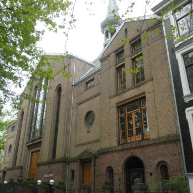 Op een centrale plattegrond tot stand gekomen bakstenen kerk, op een hoge eveneens bakstenen basement onder een cordonband, gedekt door een met leien bekleed tentdak. Op het dak een octagonaal torentje met opengewerkte en eveneens met leien bedekte puntvormige bekroning. De kerk is aan drie zijden (N, Z en O) voorzien van licht risalerende gevelfronten met een zadeldak. Deze gevelfronten zijn voorzien van drie gekoppelde lancetramen tussen twee eveneens, maar nu lager, in de gevel geplaatste lancetramen, alle voorzien van glas in lood. Onder de gekoppelde lancetramen van het gevelfront aan de Gerard Brandtstraat (O) een rechthoekige eikehouten bewerkte deur bereikbaar via een uit 11 treden bestaande hardstenen stoep tussen twee bakstenen pijlers met hardstenen bolvormige bekroning. De twee lagere zijvleugels zijn eveneens voorzien van eikehouten deuren onder een bakstenen fronton gedragen door twee pilasters en bereikbaar via een stoep. Aan beide zijden van de zijdeuren een diepliggend rechthoekig raampje met glas in lood. Boven de zijdeuren een rozetraam met glas in lood en onder de gootlijst een rechthoekig raam eveneens met glas in lood. Voor de beschrijving van de noord- en zuidzijde geldt hetgeen hierboven gezegd is, met uitzondering van de eikehouten deuren. Alle gevelzijden zijn voorzien van decoratief metselwerk. Inwendig heeft de kerk doorlopende balcons, waaronder consoles en zuilen en in het midden een stergewelf doordat drie tongewelven boven de balcons in elkaar grijpen. De houten kap is van stucwerk voorzien. De kap wordt bekroond door een koepel met glas in lood. Op de balcons bevinden zich nog originele stoelen met voetverwarming. De kansel is in rationalistische trant, geïnspireerd op het werk van K.P.C. de Bazel. Er zijn drie originele lampen en een tweeklaviers orgel met van oorsprong pneumatische tractuur en 31 registers waaronder 2 transmissies, in 1922 gemaakt door de firma Orgelbau-Anstalt W. Sauer te Frankfurt/Oder.