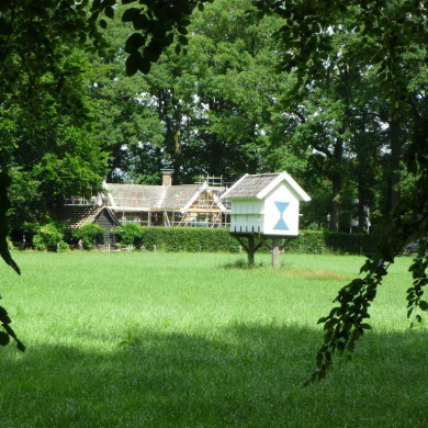 SCHUUR. Een lage, deels rode bakstenen en deels houten 19e-eeuwse schuur op een rechthoekige plattegrond onder een met "oudhollandse" pannen gedekt zadeldak, ten zuidwesten van de portierswoning gelegen. De noordelijke kopgevel bestaat uit twee grote, houten naar buiten draaiende deuren. De top van deze gevel is van een verticaal gepotdekselde houten beschot voorzien. De westgevel heeft ongeveer halverwege een klein getoogd vier ruitsvenster onder een getoogde strek. De oostgevel heeft op dezelfde plaats een identiek venstertje, met rechts ernaast een houten deur. Het achterste (zuidelijke) kwartgedeelte van de schuur bestaat uit houten gepotdekseld beschot op een bakstenen plint.