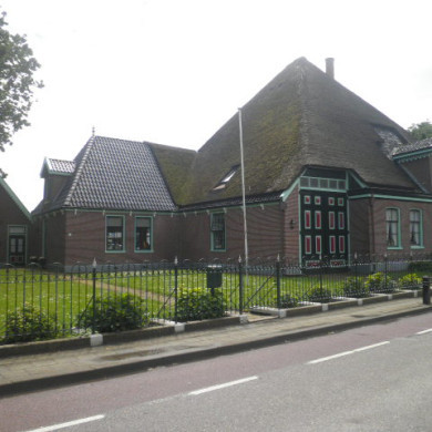 Inleiding Aan de zuidzijde van de Streekweg gelegen STOLPBOERDERIJ van het afgeleide Westfriese type met aangebouwde woning aan de linkerzijde (O). Boerderij en woning zijn beide uit de tweede helft van de 19de eeuw. Het object wordt van de Streekweg gescheiden door een ijzeren sierhek. De achterzijde (Z) van de boerderij is gewijzigd, echter zonder het monumentale karakter van de boerderij te schaden. Omschrijving Stolpboerderij met aangebouwde, ten dele onderkelderde, woning. De stolpboerderij heeft een L-vormige plattegrond en de woning heeft een rechthoekige plattegrond. De stolpboerderij heeft een rietgedekt schilddak met getrapte spiegels aan de voorzijde (N) en de rechterzijde (W). Het dakschild aan de rechterzijde wordt doorbroken door een schoorsteen op vierkante basis met ronde schacht. De schoorsteen is opgebouwd uit rode baksteen met gele baksteen ter decoratie. Spiegels en pannenrand zijn bedekt met een zwarte geglazuurde Hollandse pan. De stolpboerderij heeft aan de linkerzijde (O) een rechthoekig staartstuk onder zadeldak met zwarte geglazuurde Hollandse pan. De inwendige houten vierkantconstructie van de stolpboerderij bestaat uit vier pijlers met dekbalkgebint en overstek aan de rechterzijde (W). Het muurwerk van boerderij en aangebouwde woning is overwegend opgetrokken in rode baksteen. De voorzijde (N) heeft links de darsdeur met een vijfruits bovenlicht en rechts een symmetrisch gevelgedeelte met een breedte van vijf vensterassen dat door een kroonlijst wordt afgesloten. De middelste as heeft een houten paneeldeur met ijzeren harnassen en bovenlicht met ijzeren siermotief. Hierboven bevindt zich een dakkapel met venster onder een overstekend zadeldak dat bedekt is met een zwarte Hollandse pan. De flankerende assen hebben getoogde zesruits schuifvensters. De rechterzijde (W) telt vijf vensterassen en wordt door een kroonlijst afgesloten. In de meest rechtse as bevindt zich een houten paneeldeur met getoogd bovenlicht. De overige vier assen zijn paarsgewijs geplaatst en voorzien van getoogde zesruits schuifvensters. De linkerzijde (O) heeft in het muurwerk tot aan het dwars hierop staande staartstuk een twaalfruits schuifvenster. Het staartstuk heeft in de aangrenzende noordzijde twee T-vormige schuifvensters. De kopse oostzijde van het staartstuk heeft in het midden een opgeklampte deur met bovenlicht. In het dakschild daarboven bevindt zich een dakkapel met gesneden windveren en met een dubbele paneeldeur met glaspanelen. Het muurwerk van de linkerzijde heeft een goot op gootklampen. De voorzijde van de aangebouwde woning heeft op de parterre een paneeldeur, daarnaast twee schuifvensters met T-ramen en in de geveltop een dubbele houten paneeldeur met glaspanelen. De woning heeft een zadeldak met zwarte Hollandse pan en gesneden windveren. In de nok staat een vierkante schoorsteen. De linkerzijde (O) heeft een opgeklampte deur met daarnaast een getoogd ijzeren stalvenster. De achterzijde heeft in de geveltop een zesruits schuifvenster. Waardering De stolpboerderij met aangebouwde woning is van architectuur- en cultuurhistorische waarde als gaaf bewaard voorbeeld van landelijke bouwkunst uit de tweede helft van de 19de eeuw.